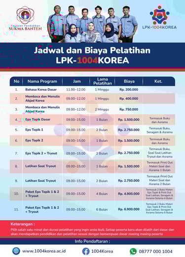 LPK 1004 Korea benar-benar membantu saya memulai karir di Korea. Pengajaran bahasa sangat efektif dan bimbingan kerja yang diberikan sangat bermanfaat. Terima kasih!