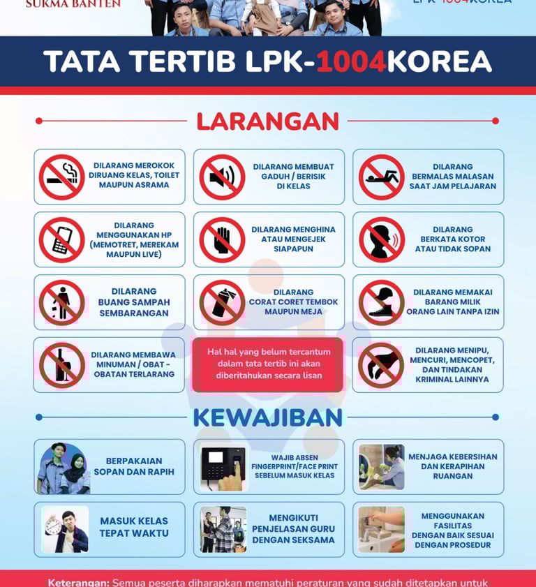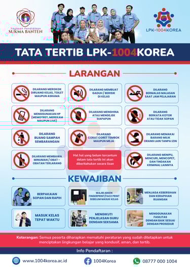 Harap di pahami tentang tata tertib di LPK-1004korea
